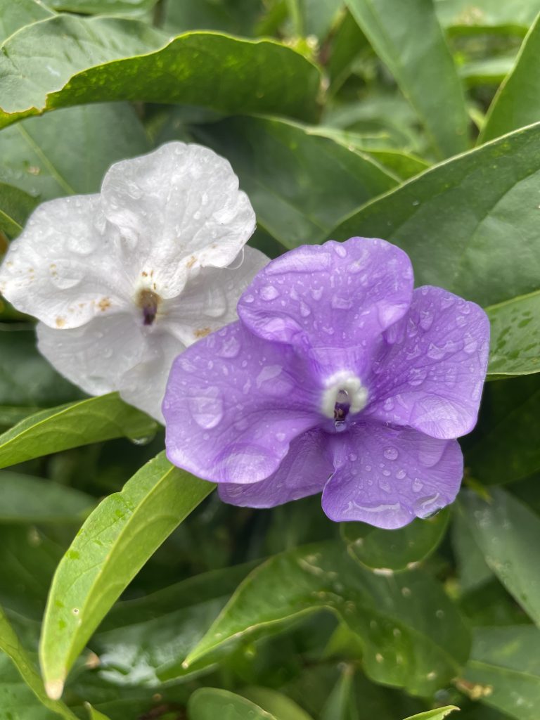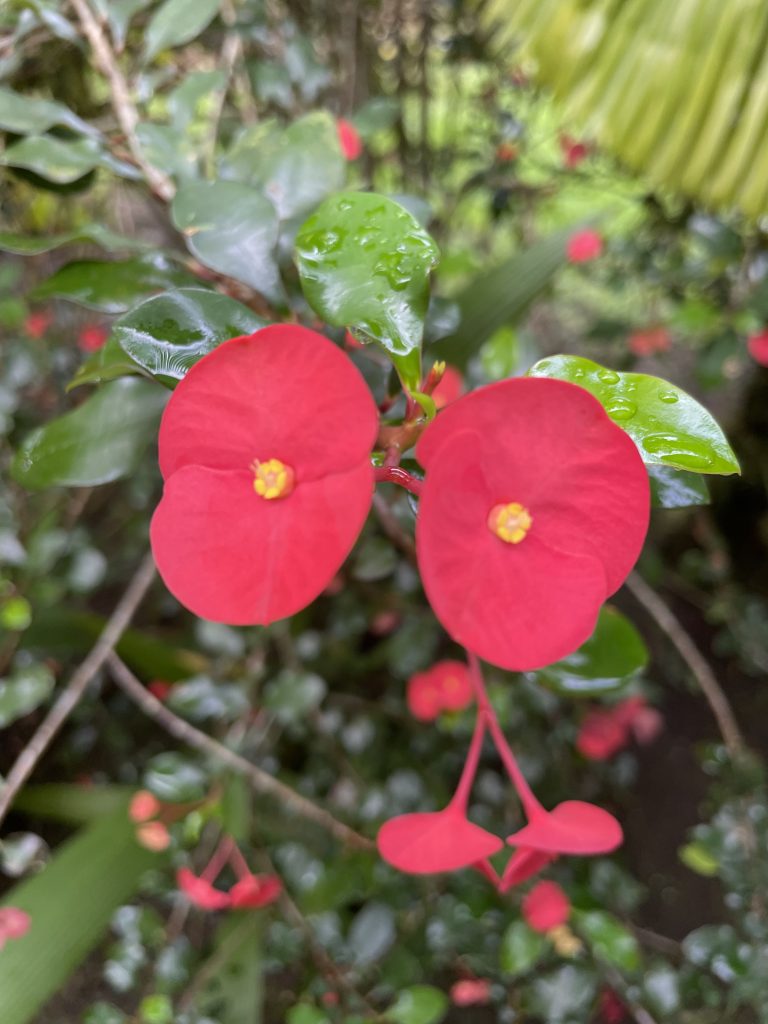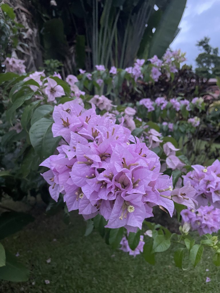 (And before you ask, I don’t know the names of most of these other than the obvious hibiscus and bougainvillea! All the field guides in our house are for animals, birds, and insects. Nothing for us poor plant-lovers!)