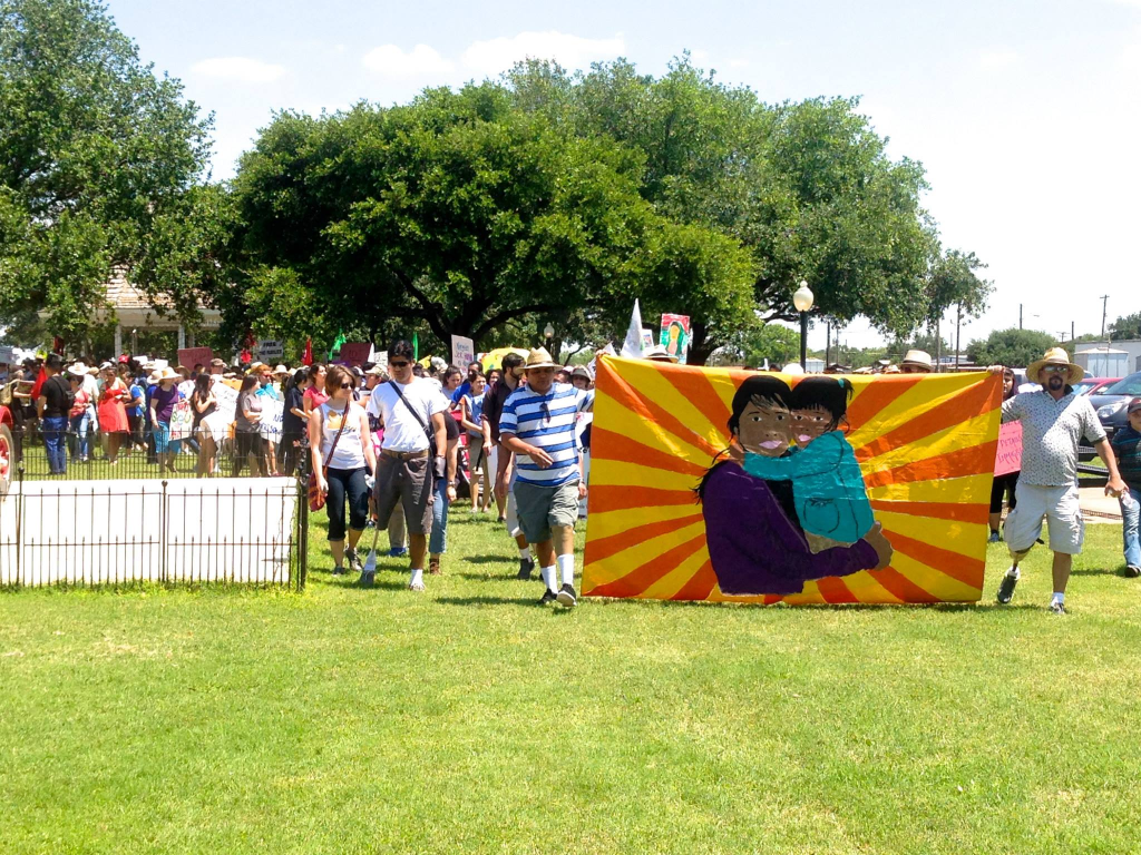 Many of the detained immigrant mothers were desperate to call attention to their situation and they decided to organize a hunger strike. Allies and community members outside of the detention centers organized alongside them, and I participated in a major protest they organized in May 2015 outside of a new family detention center that was being built in Dilley, TX.
